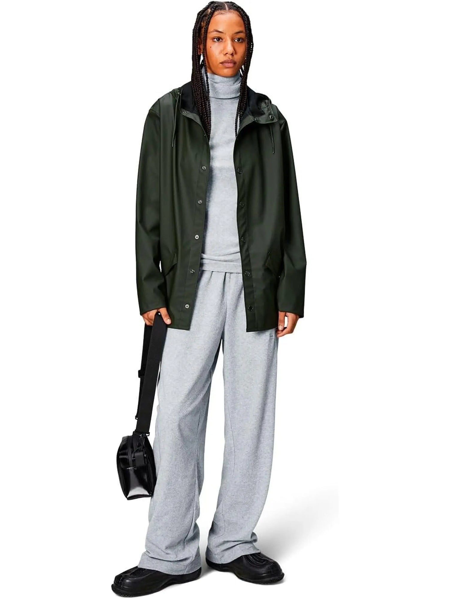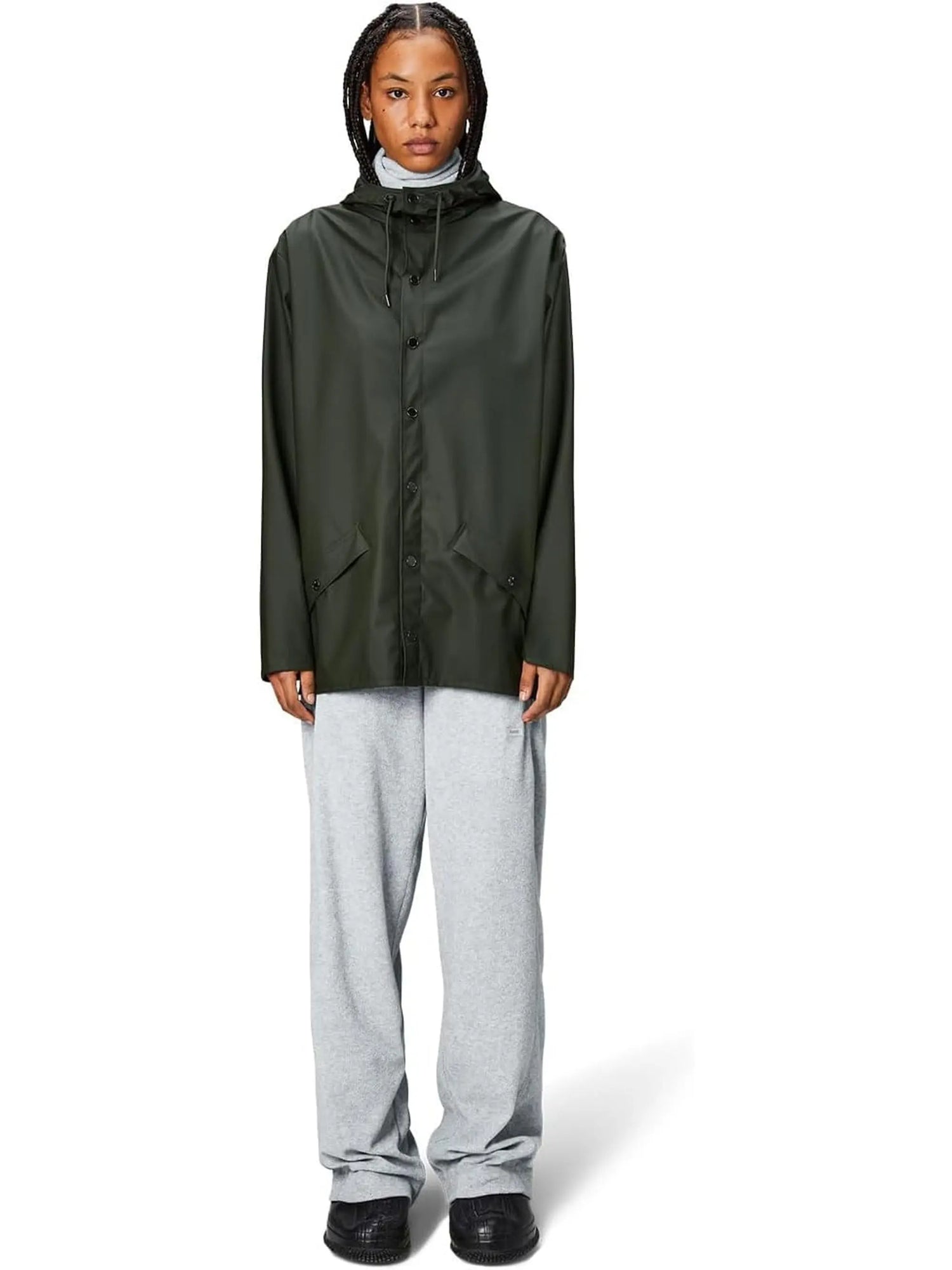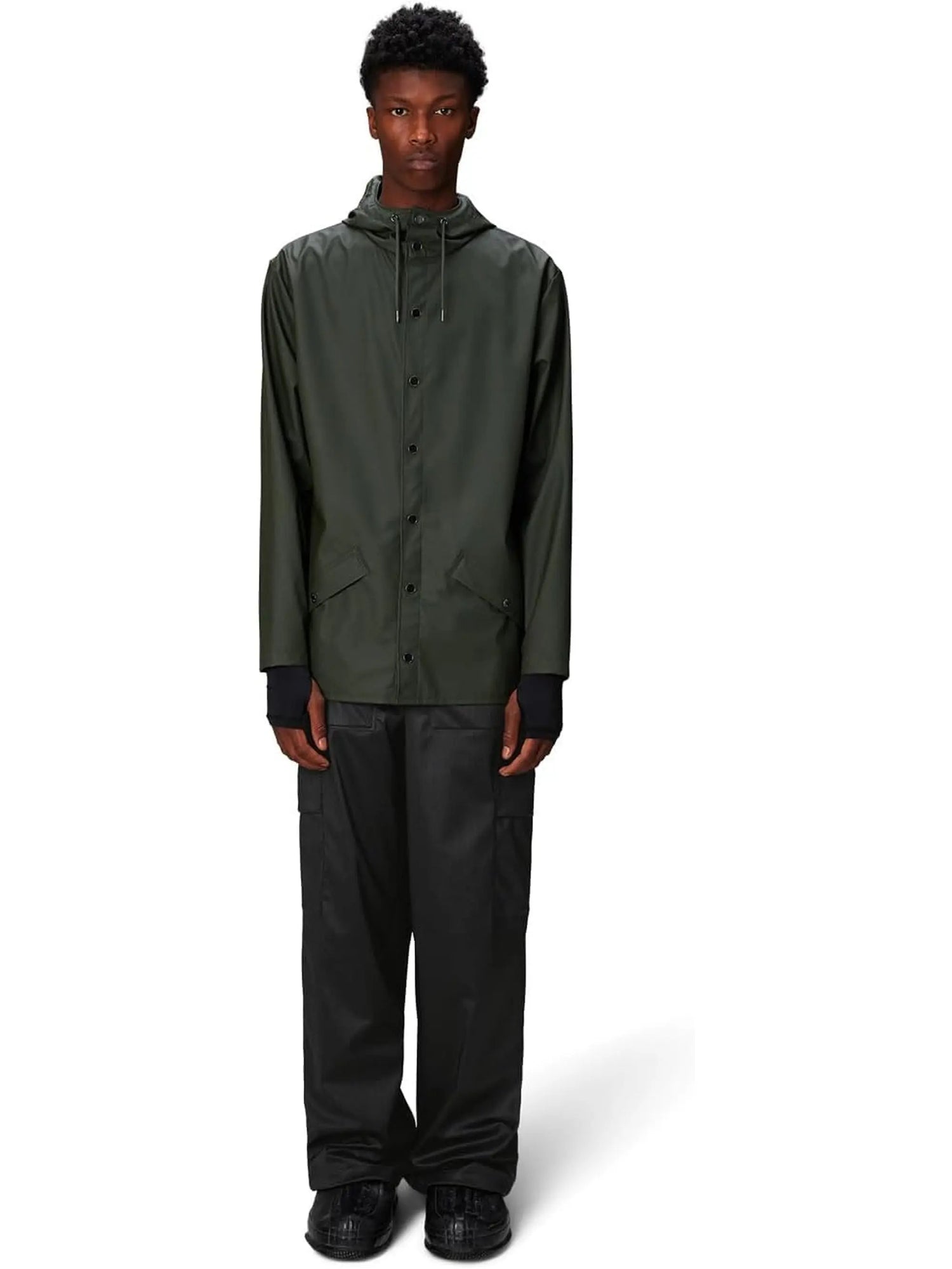 Rains Unisex Green Raincoat - XS is backordered and will ship as soon as it is back in stock.