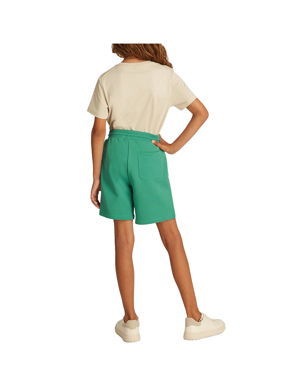 The Calvin Klein Jr Boys' Shorts can be easily paired with a colorful t-shirt to create a casual, vibrant look perfect for playground trips or days out. Add a pair of sporty sneakers for a touch of comfort and style. For a more sophisticated look, opt for a lightweight shirt and a Panama hat, which will give you the look of a trendy little explorer. The Bahama Green shade pairs well with neutrals or bright hues, enhancing the modern feel of these shorts. Whether for a day at the beach or a garden party, these Bermuda shorts are a versatile and stylish choice for any occasion.