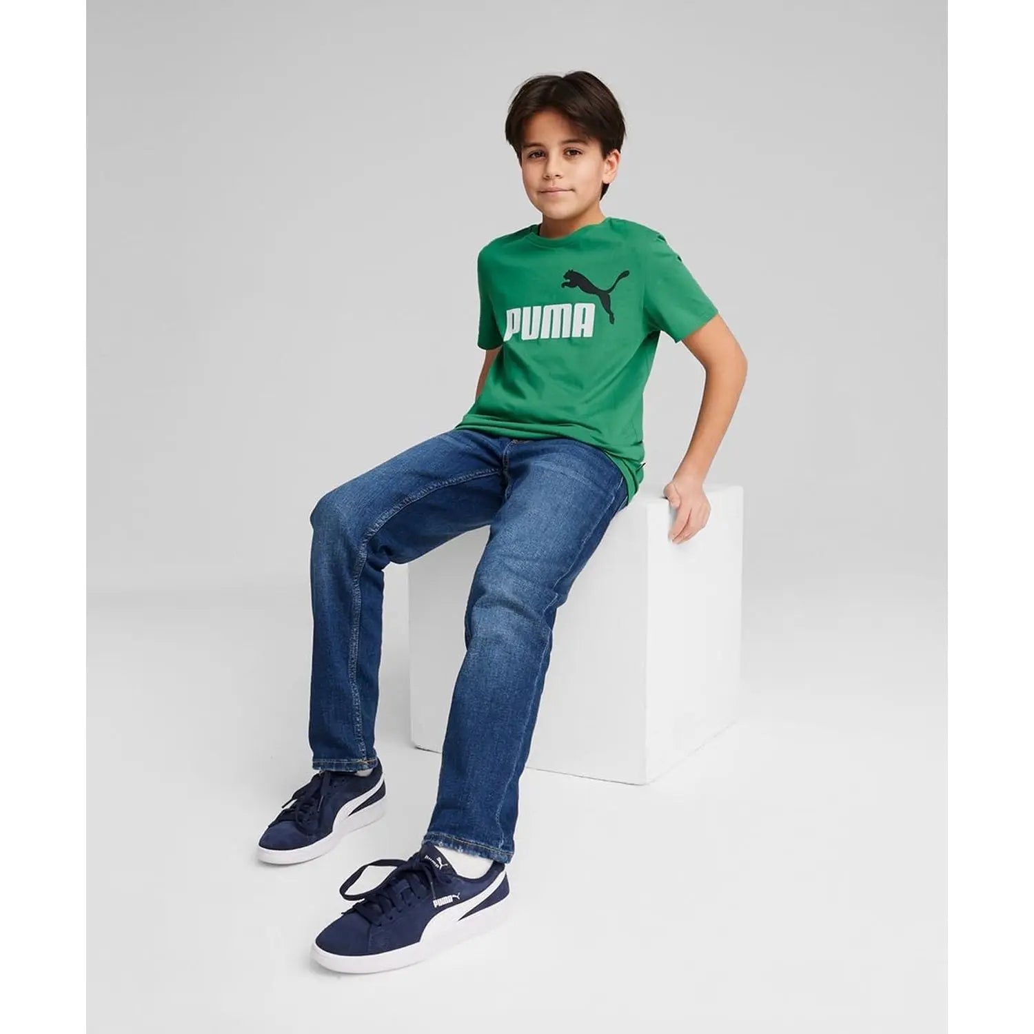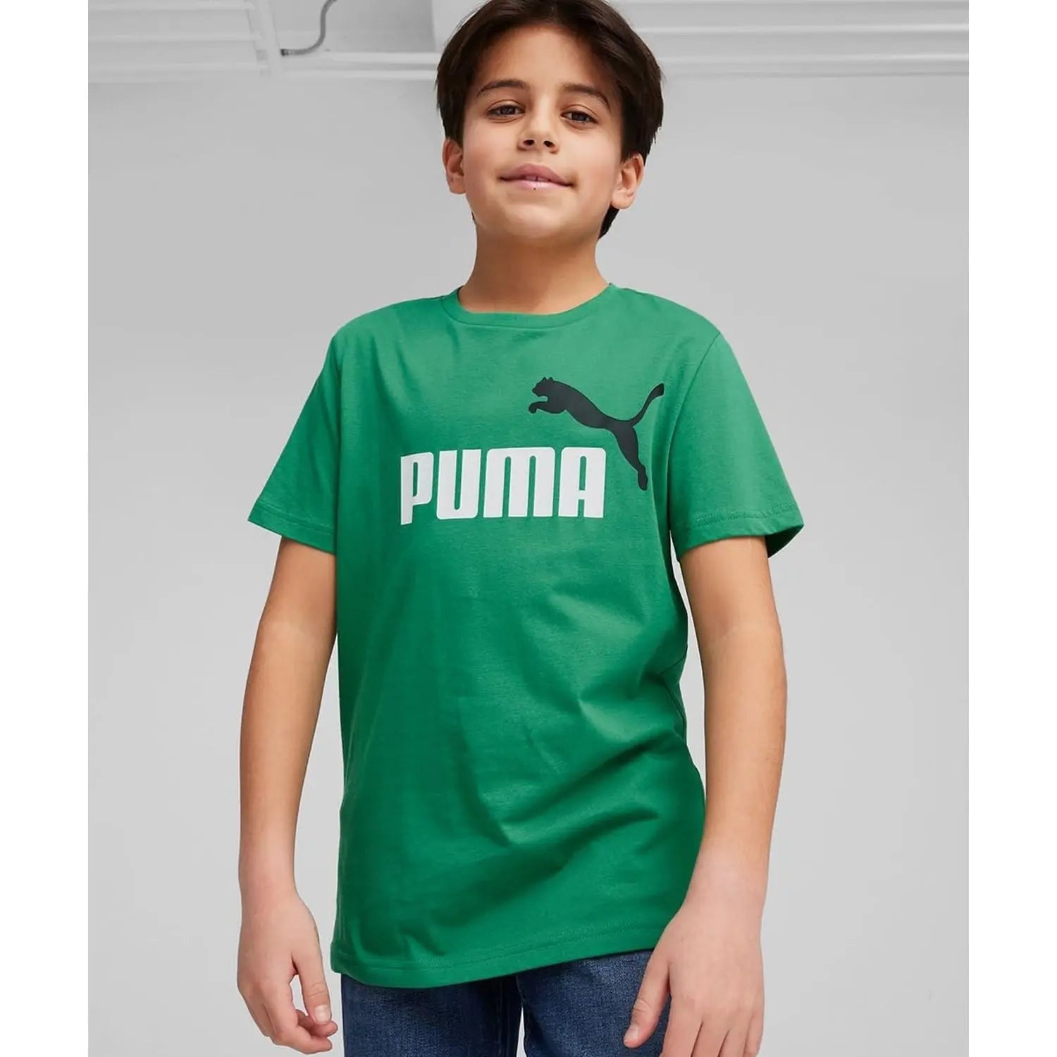 Puma Kids' Ess+ 2 Sports T-Shirt with Green Logo - 116 is backordered and will ship as soon as it is back in stock.