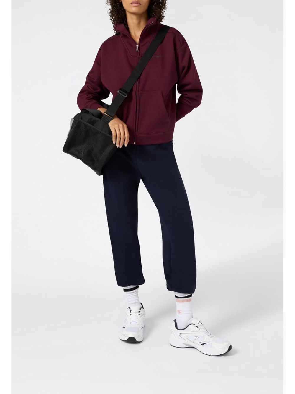 La Tuta Champion Donna - Bordeaux è perfetta per un look casual e sportivo. Può essere abbinata a sneakers bianche per un effetto fresco e dinamico, oppure a scarpe da ginnastica colorate per un tocco di vivacità. Completa il look con una giacca leggera nei toni neutri e una borsa a tracolla per un ensemble pratico e alla moda. Ideale per il tempo libero e le giornate all'aperto, aggiunge un tocco di stile al tuo guardaroba quotidiano.